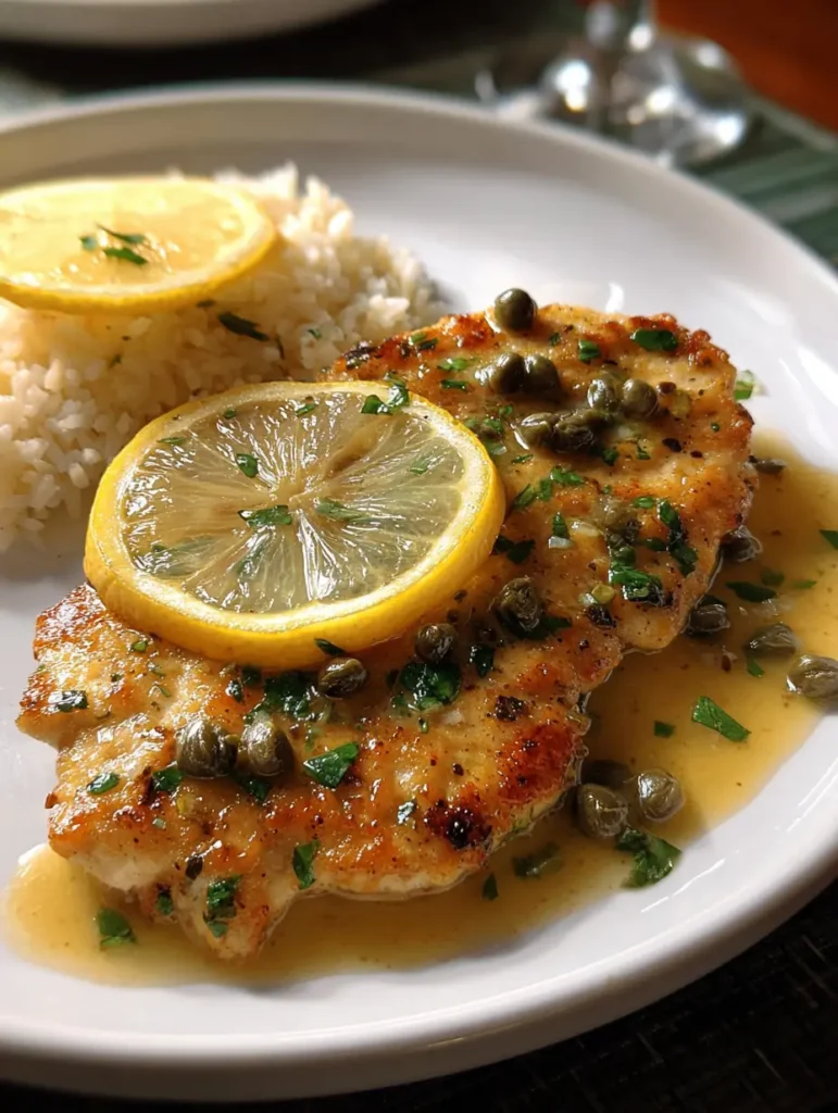 Chicken Piccata with Lemon Sauce is a delightful culinary experience that brings together the zesty brightness of lemon and the savory richness of perfectly seared chicken. This dish is quick and easy to prepare, making it perfect for busy weeknights or special gatherings. With its golden-brown chicken, a vibrant lemon sauce, and a sprinkle of Parmesan and parsley, Chicken Piccata not only pleases the palate but also impresses the eyes. Serve it over pasta, alongside sautéed vegetables, or with crusty bread for a meal that’s as versatile as it is delicious.